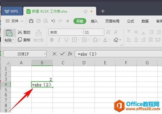 现在我们来求2的绝对值,则在任意单元格内输入“=abs(2)”然后按下回车键,即可求出2的绝对值。