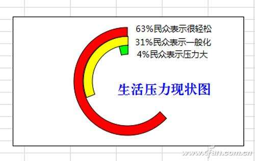 首先我们需要将调查结果数据安排在一个WPS表格中,调查结果分“压力大”、“一般化”、“特别轻松”3种结果,按百分比由小到大的顺序排列。