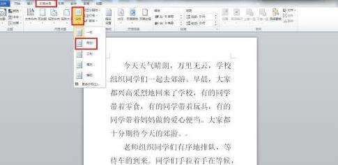 点击【页面布局】-【分栏】。可以根据自身的需要选择分为几栏。下面我们举例的是分为两栏的状态。