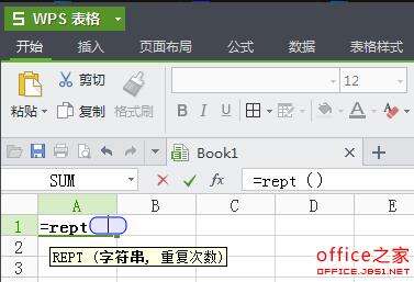 REPT功能可以根据定义的次数重复显示文本,相当于复制文本。如下图所示,报告函数的两个参数是字符串和重复次数。
