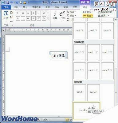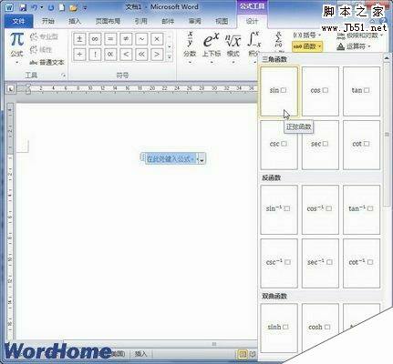 以上是为您收集整理的【在Word2010文档中如何创建包含数学函数的公式】办公软件教程的全部内容,希望文章能够帮你了解办公软件教程在Word2010文档中如何创建包含数学函数的公式。