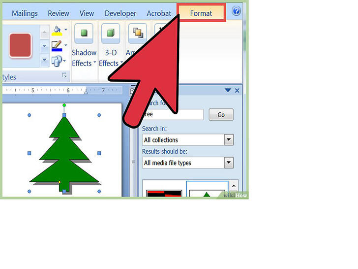 格式化剪贴画图形。要格式化新插入的图形,确保图形被选中,单击菜单栏上的“格式”选项卡。选择格式工具栏上“排列”菜单中的“文本自动换行”按钮。从下拉菜单的可用选项中选择“背衬于文字”。