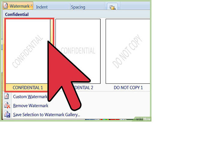水印菜单中预格式化的水印不适合您的项目需求时,使用“自定义水印”功能。从“布局格式”工具栏上,单击“页面背景”菜单中的“水印”按钮。点击下拉菜单底部附近, 7个预格式化选项下方,标记为“自定义水印” 的 链接。印刷水印对话框将打开。