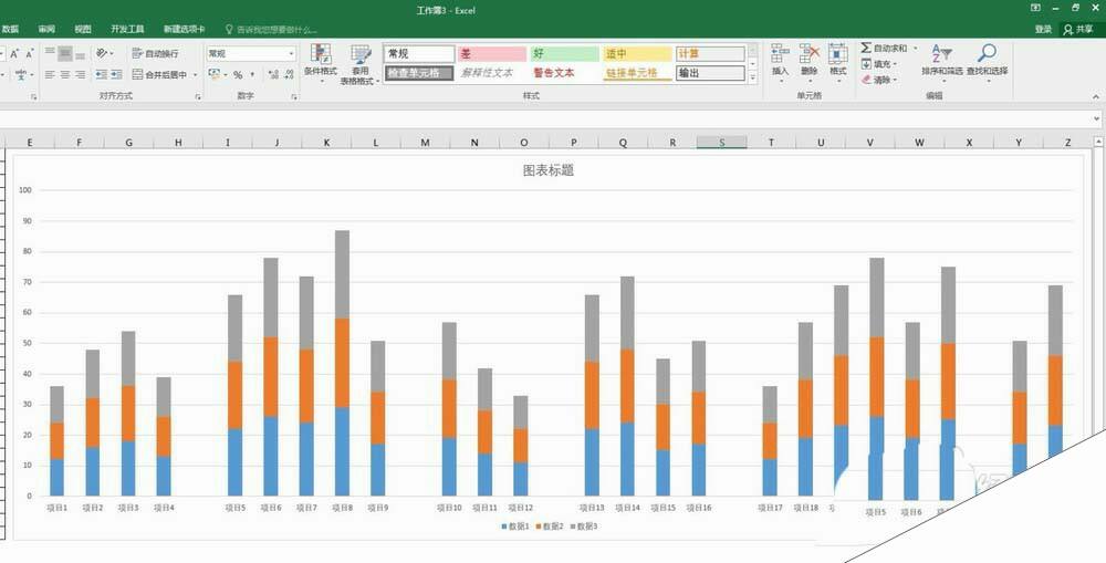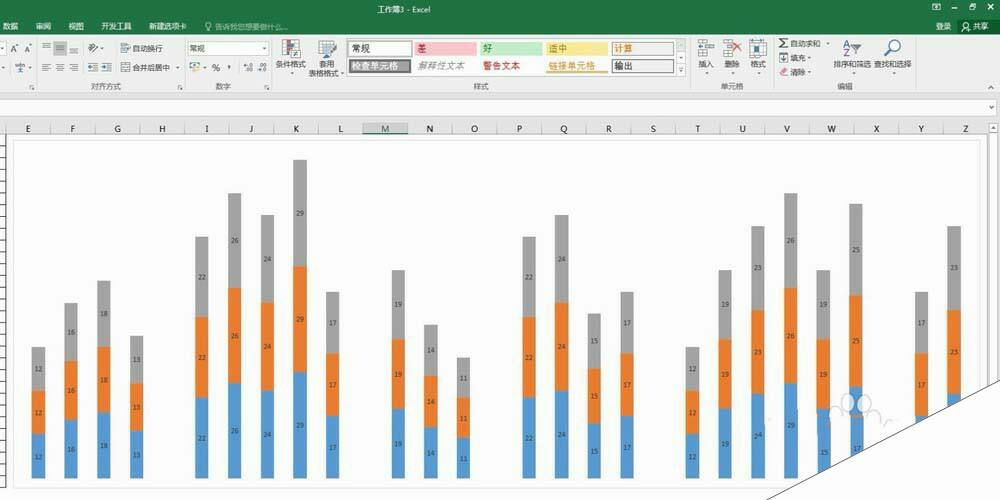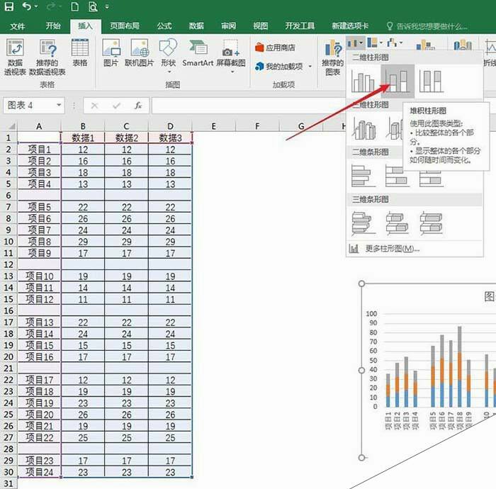4、这样就得到默认样式的堆积柱形图。