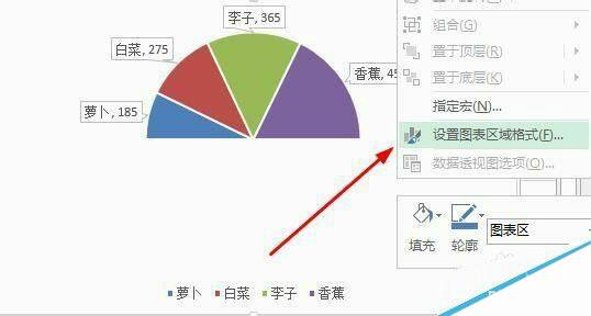 右键单击饼图,然后我们在这里可以看到有一个【设置图表区域格式】