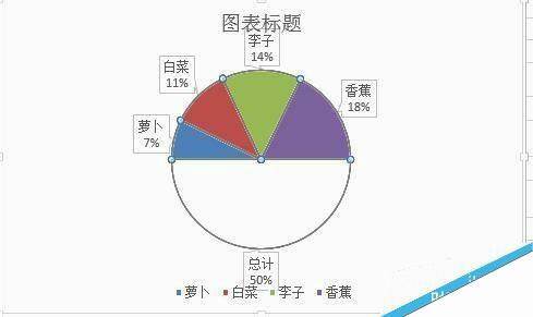 好了,半圆饼图的雏形已经有了,我们接着要删除【总计】这个标签了。