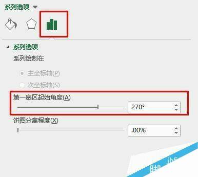 如何旋转饼图:来到这里,设置系列选项,我们设置第一扇区起始角度为270