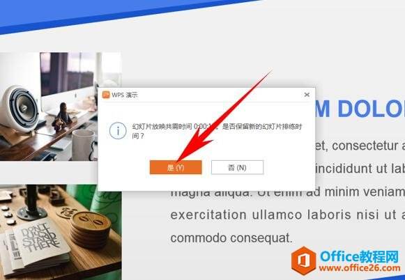 进入幻灯片放映,放映完毕后,弹出对话框显示幻灯片放映总时间,单击是。