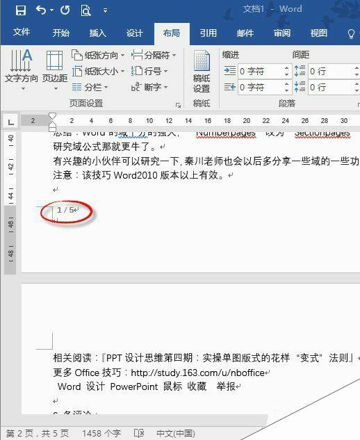 删除封面页码之后,再回到正文第1页末端查看,发现页码依旧完好存在且是从1算起的,符合要求。