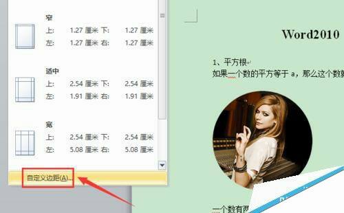 当然也可以根据自己的需要点击“自定义边距”,通过自己的设定确定页边距,如图所示。