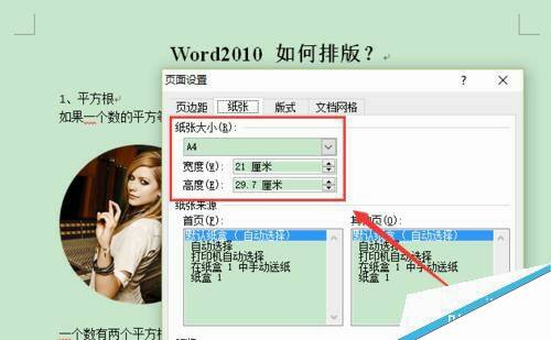 在纸张页面,我们可以选择纸张的大小和尺寸,如图所示。