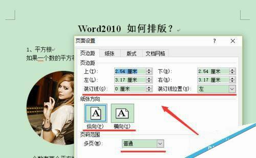 在页边距栏,我们可以设置页面上下左右的编辑距离,纸张的方向和装订线距离等等属性,如图所示。
