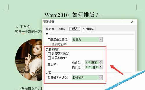 而在版式页面,我们可以设置页眉页脚的距离、奇偶页的属性等等信息,如图所示。
