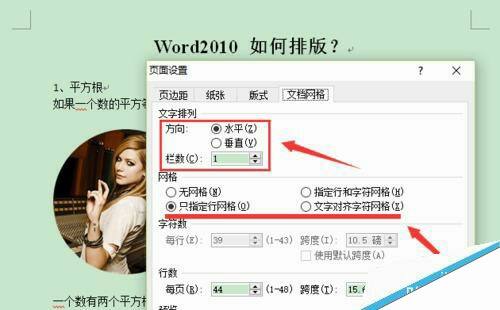 在最后的文档网格界面,我们可以设置输入文字的方向、页面分栏数、网格等属性,如图所示。