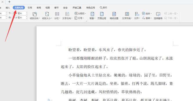 第二步:在打开的文档中点击菜单栏上的“页面布局”: