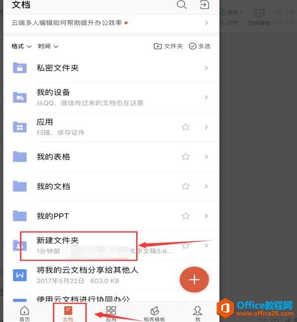 然后,切换到【文档】页面,打击打开需要分享的文件夹【新建文件夹】;