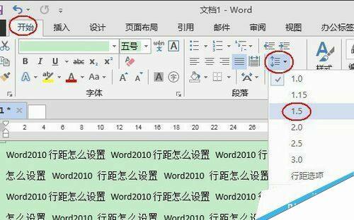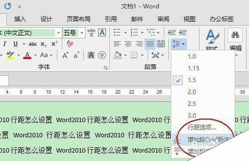 2、再单击“开始”选项卡下的“行和段落间距”按钮,选择需要的数值即可: