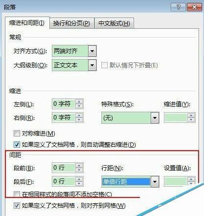 6、从“段落”对话框中的“间距”进行精确设置: