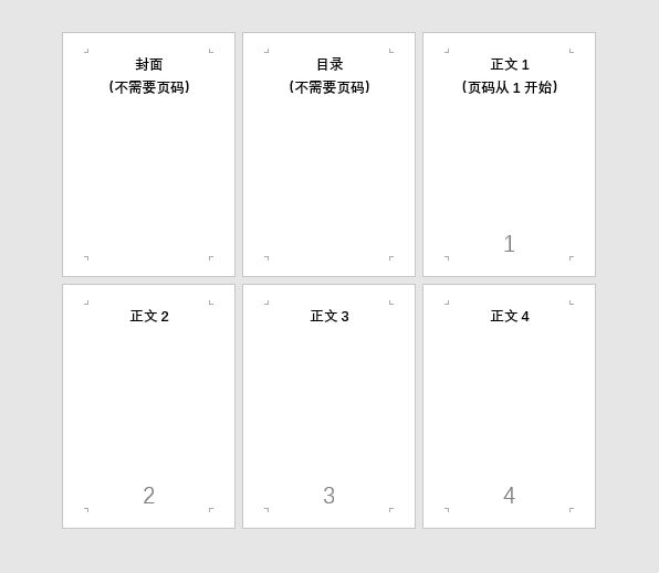 3、可以看到,封面也和目录页都没有页码,正文页的页码从1开始,最终的效果图如下所示。