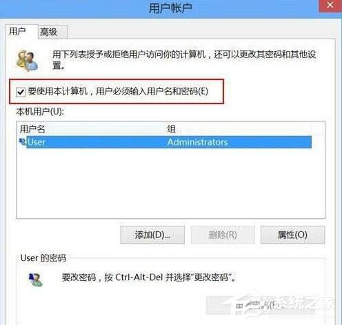 2.到了这个对话框,只需勾去“要使用本计算机,用户必须输入用户名和密码”选项,按下确定。