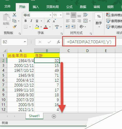 解释:DATEDIF函数的作用是计算从开始日期到结束日期的时间(天数、月数或年数)。其中A2为开始日期,TODAY()为结束日期,"y"表示信息类型为年数(若要计算月数改为m,计算天数改为d即可)。