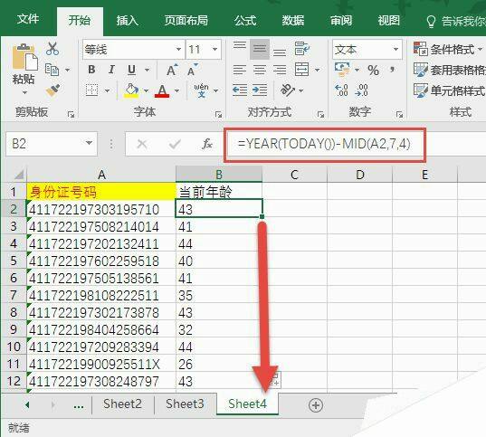 解释:其中YEAR(TODAY())代表今年,MID(A1,7,4)取身份证中的年份,两个相减就是年龄。