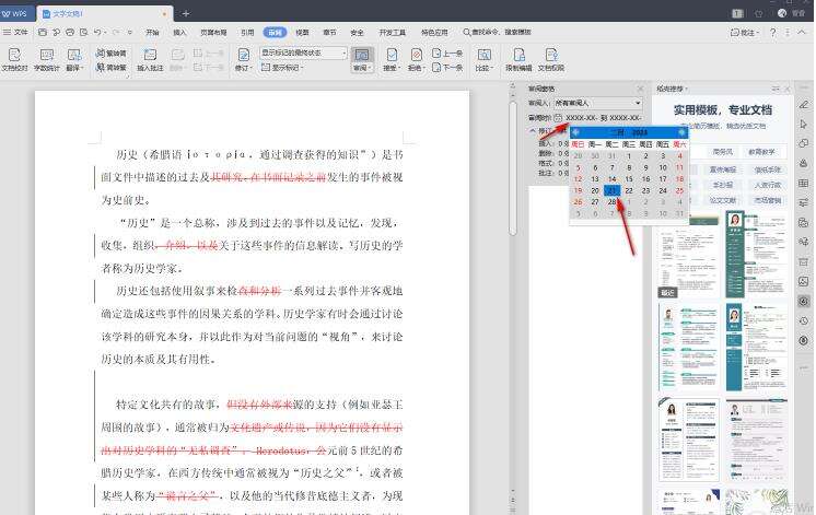 4.并且你可以根据自己的需要选择【审阅人】以及【审阅时间】来查看修改痕迹。