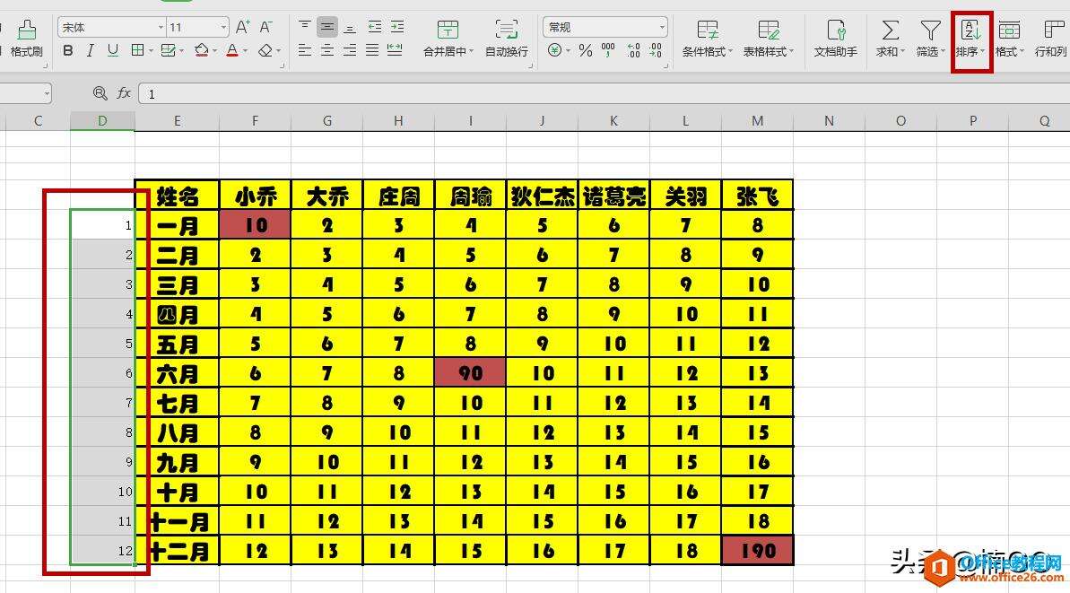 接着在转置后的表格任意一侧输入一列辅助序列(即123456789….的排序)