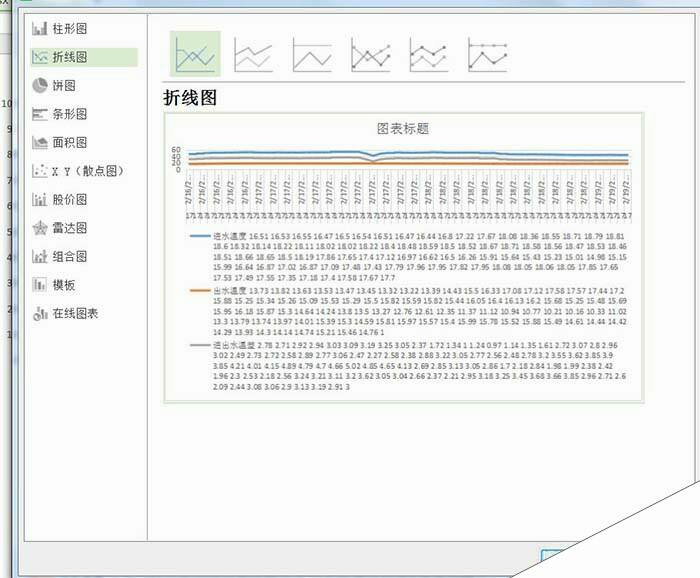 6、我们可以选择折线图,上方还有不同的折线图表。