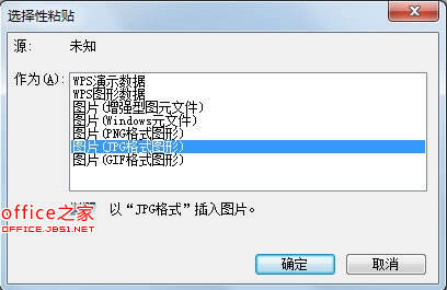 在选择性粘贴界面,我们选择JPG格式,点击确定。