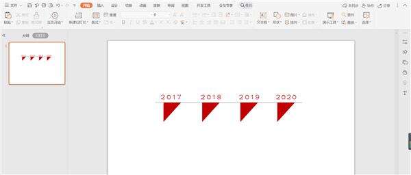以上是为您收集整理的【如何使用WPS在PPT中做三角形时间轴?】办公软件教程的全部内容,希望文章能够帮你了解办公软件教程如何使用WPS在PPT中做三角形时间轴?。