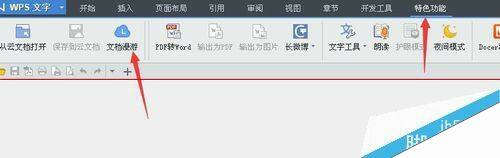 2、找到“特色功能”,点击“文档漫游”。或者直接点击右侧“漫游文档按钮”