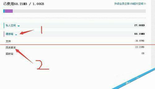 5、在右侧点击“漫游箱”,再点击“历史版本”