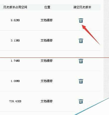 6、然后点击需要删除历史版本的文档右侧的删除按钮即可。