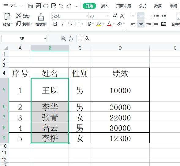 1.首先需要用户在wps软件中把表格打开,并选中其中的姓名单元格