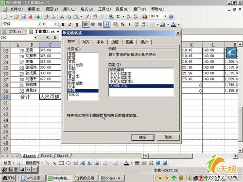 然后在单元格菜单的特殊分类中选择人民币大写