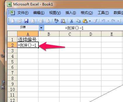 2、输入“=row()-1” ,Enter回车确认输入后再选中A2单元格。