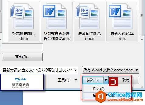 2.在“插入文件”对话框中选中要合并的多个文档,如图2所示。