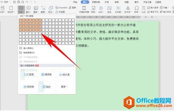 首先,我们给文档添加一个表格,单击工具栏插入下的表格,在下拉菜单下选择表格行列数,单击即插入。