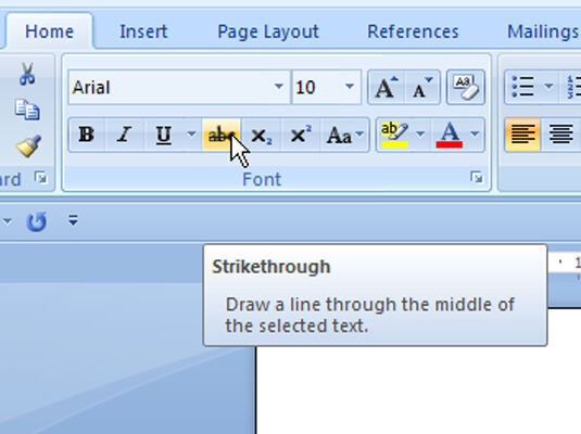 单击删除线按钮删除文本。(此快捷键没有键盘快捷键。)删除线在法律领域很常见,当您要说些什么但又改变主意并想出更好的说法时。