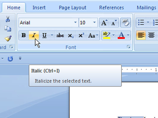 要使文本变为斜体,请按Ctrl + I或单击“斜体”按钮。斜体对于强调文本很有用。