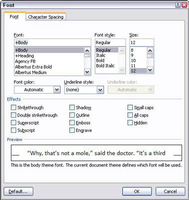 Word中提供了更多的文本格式,例如小写字母,轮廓和阴影。可以通过“字体”对话框(按Ctrl + D)进行访问。