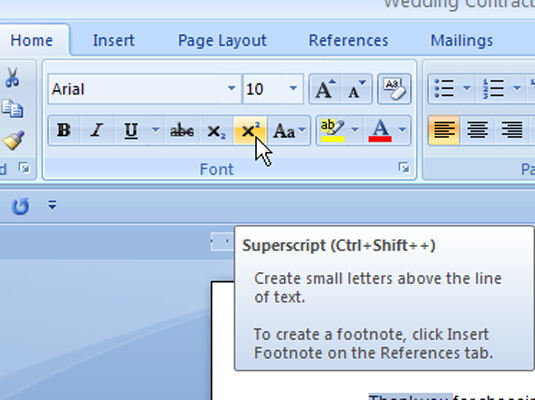 通过按Ctrl + Shift + =(等于)或单击“上标”按钮来使文本上标。上标文本显示在该行的上方,例如210中的10。请注意,该命令写为Ctrl ++(加号),但实际上是Ctrl + Shift + =。如果您还记得Ctrl + =是下标,只需按Shift键即可获得上标的Ctrl + Shift + =。