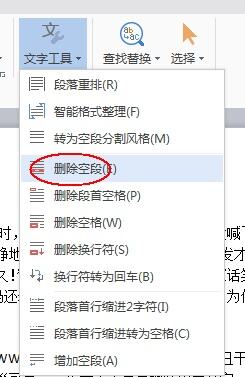 3、在“文字工具”弹出的列表中点选“删除空格”,计算机将自动将文档中的空格全部删除。