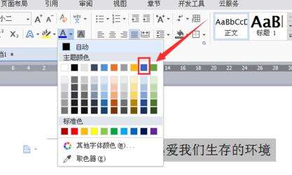 点击字体颜色的下拉箭头,进入颜色选择界面,如图所示: