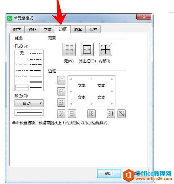 首先选中所要设置的单元格,单击鼠标右键,点击设置单元格格式。弹出单元格格式对话框,选择点击边框即可设置所选单元格的格式。