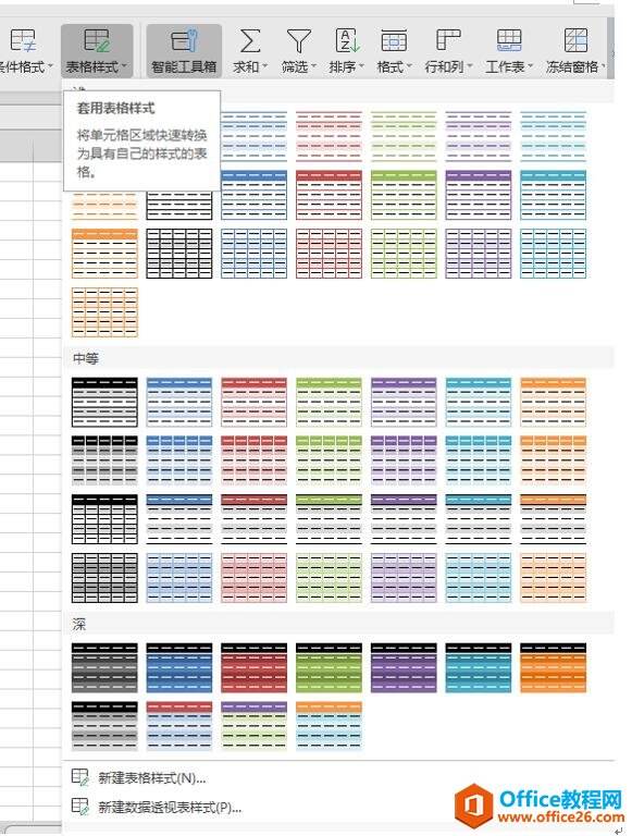第二种方法操作起来也很简单,点击工具栏中开始-表格样式,此时可以看到会有很多种表格样式,这是可以随意选择进行区分啦。