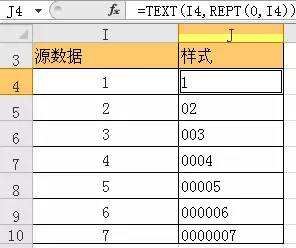 另外,前导0的效果,想显示几位就写几个0,可以配合rept函数来写,rept(字符,重复次数)。下图就是一个为数据前面加0的效果。