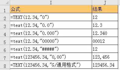 =TEXT(12.34,”0″),含义是将数字12.34四舍五入到个位,然后以文本方式输出结果。这个公式也可以简写成:text(12.34,0),当只有一个0的时候,引号可以不加。