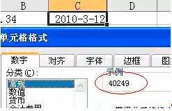 先说说日期这种特殊的数据类型,日期“2010-3-12”,其实是数字40249,如下图所示。
